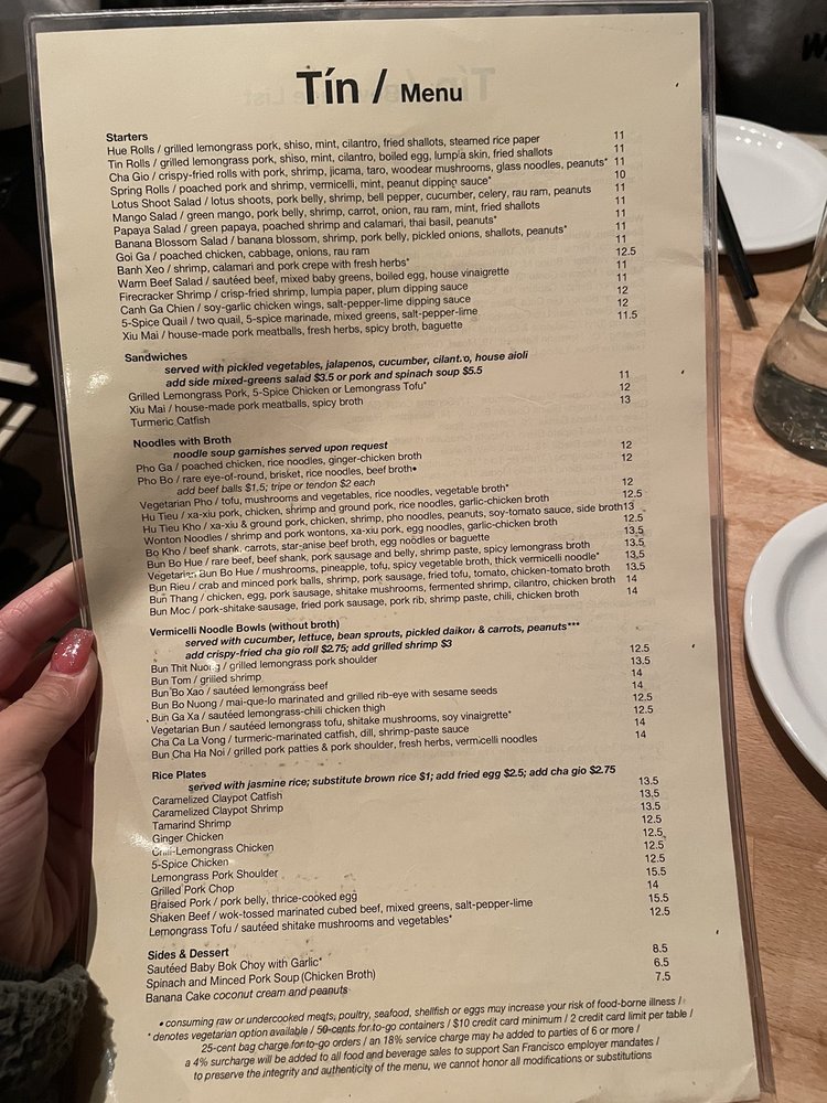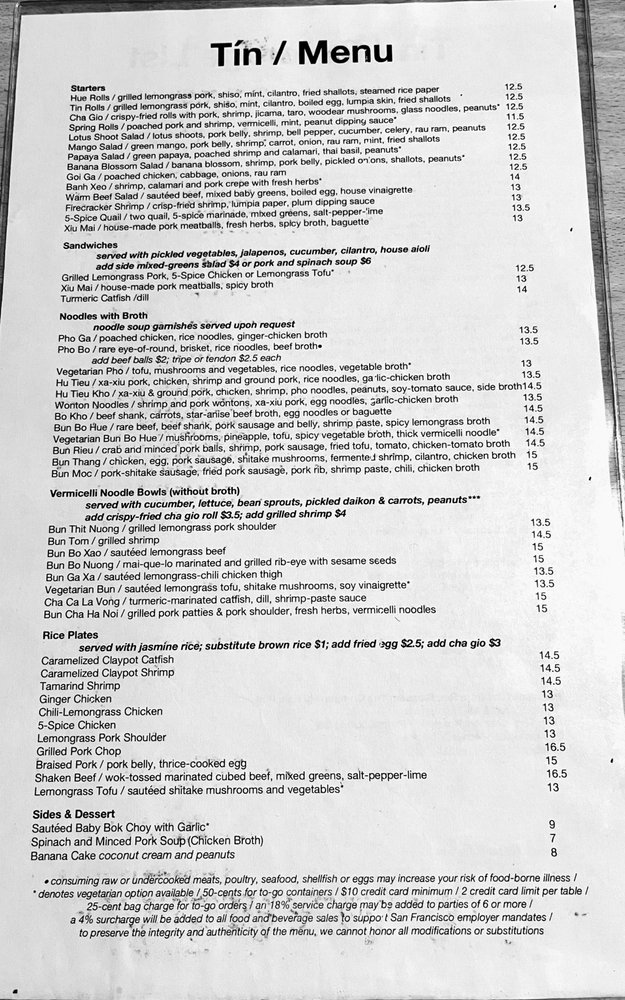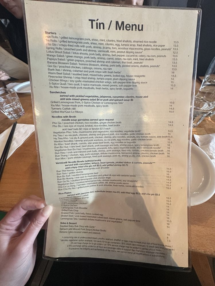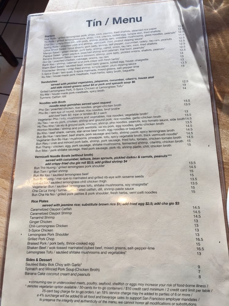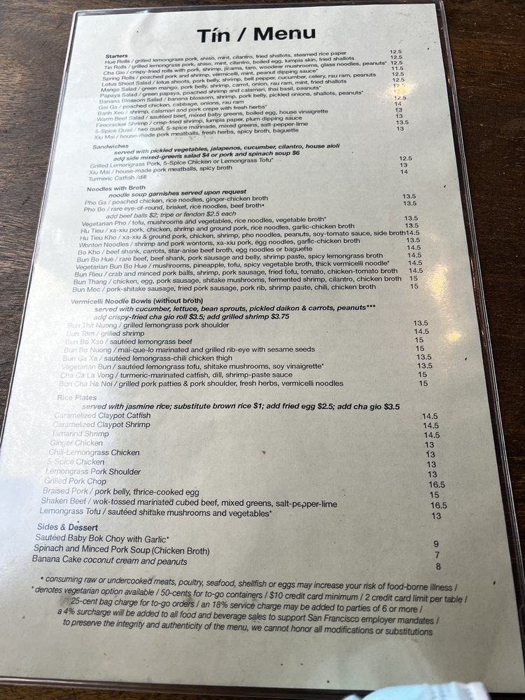 Located in San Francisco's SoMa area, Tín Vietnamese on Howard St offers a wide range of Vietnamese cuisine with options like Pho Ga, lemongrass beef vermicelli bowls, banhmi, and more. Customers have praised the delicious food and attentive service, making it a popular spot for both lunch and dinner. The cozy and casual ambiance, along with gender-neutral restrooms and outdoor seating, adds to the overall dining experience. Highlights include the grilled lemongrass pork chop, vegetarian pho, and the flavorful oolong tea served in a pot. With options for vegans, vegetarians, and those looking for gluten-free choices, Tín Vietnamese caters to a diverse group of diners. For a taste of authentic Vietnamese flavors in a welcoming environment, Tín Vietnamese on Howard St is a must-visit spot in the area.